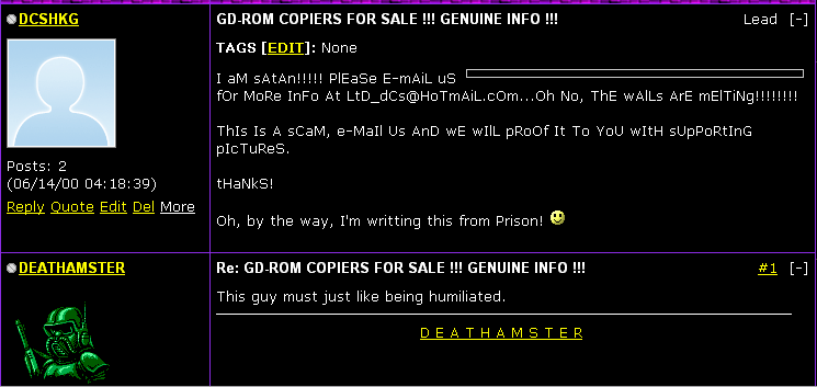 | Robin: It seemed appropriate for this situation to use someone who is no stranger to taking on internet lamers. She's been in retirement for some time now, but we pulled her old files. Roll it, Gordon! |